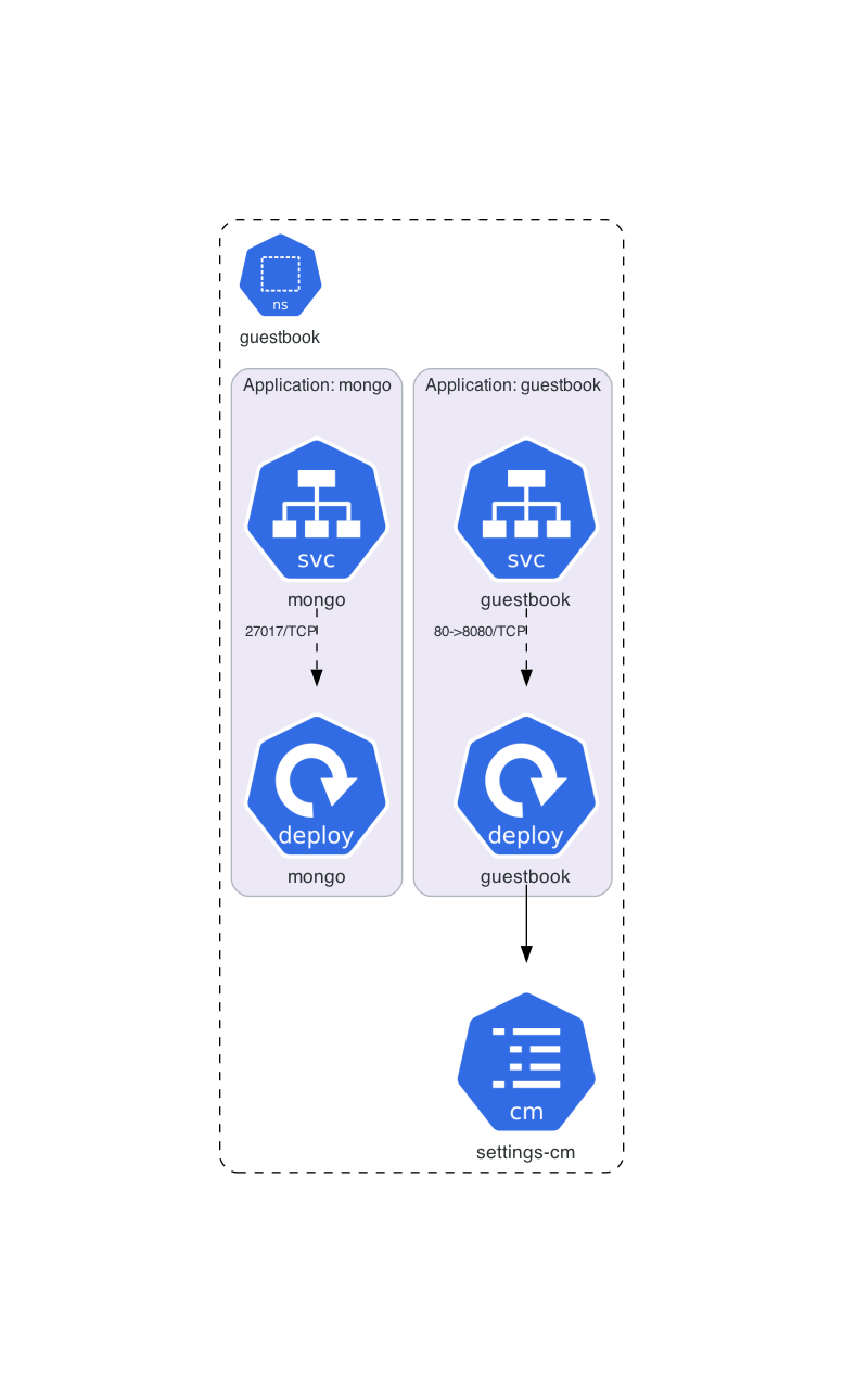 You may ask yourself: Isn’t that the same as just running kubectl apply -f deployment.yaml -n guestbook? Yes, you are correct! At this stage Helm is not templating anything and it will just apply the file during installation.