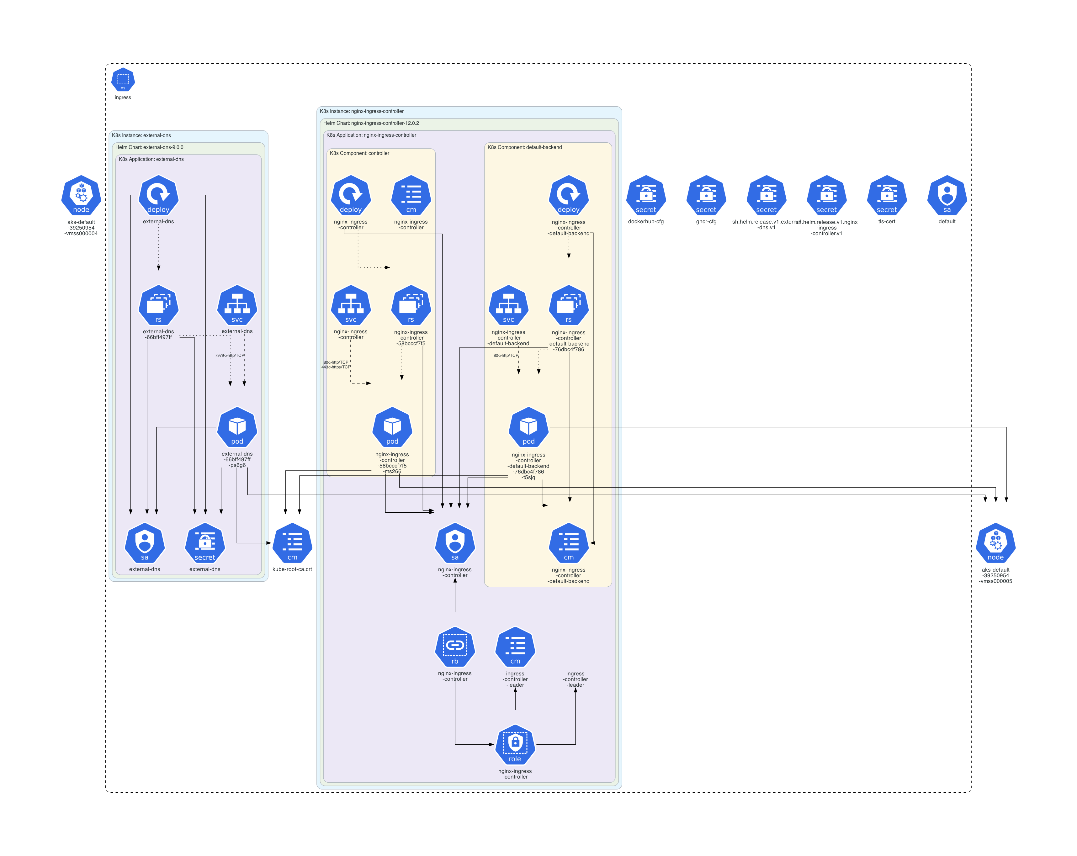 - It extracts hostname information from various Kubernetes resources (mainly services and ingress) and creates entries at configured DNS providers. In our case it’s Azure DNS.